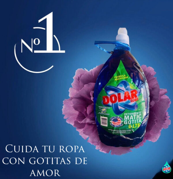 Es un detergente líquido espuma controlada con fragancia intensa, pH neutro, levemente alcalino, diseñado especialmente para la limpieza de prendas con fuertes contenidos de suciedad, consiguiendo más cuidado y protección en los tejidos y sus colores, gracias a sus componentes especiales hacen que el detergente Gotita Dolar sea un detergente de primer nivel. Además, ha sido desarrollado para minimizar el riesgo de alergias en la piel. Recomendado para el lavado de ropa en general ya sea blanca o color. Lo práctico de este envase es que viene con tapa dosificadora, lo que hace mas fácil medir la cantidad de gotitas por carga.Detergentes Dolar una marca familiar que dejará felices a Camila, Antonella, Maite a Catalina, a Martin, Gaspar, Renato, Alonso, Maxi, Agustin, Ignacio, Facundo, Amanda hasta al pequeño Luciano y a millones en el mundo entero.